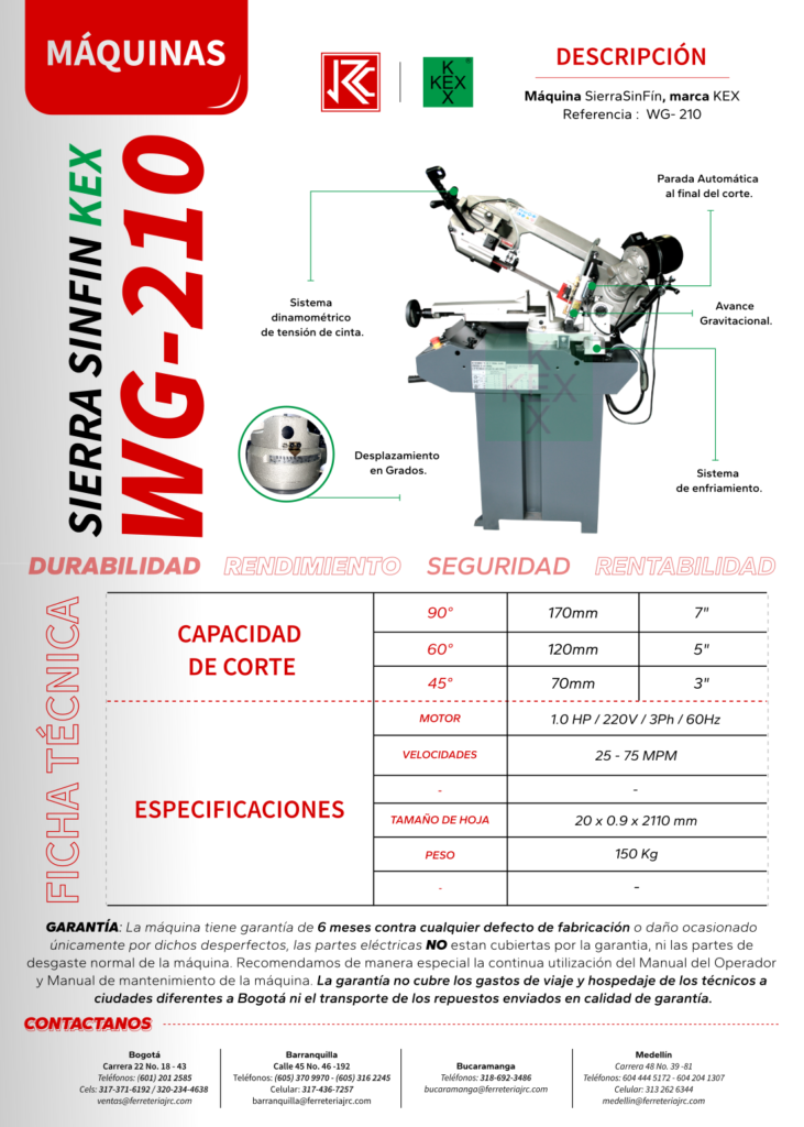 FICHA TÉCNICA SIERRA SINFÍN KEX WG – 210