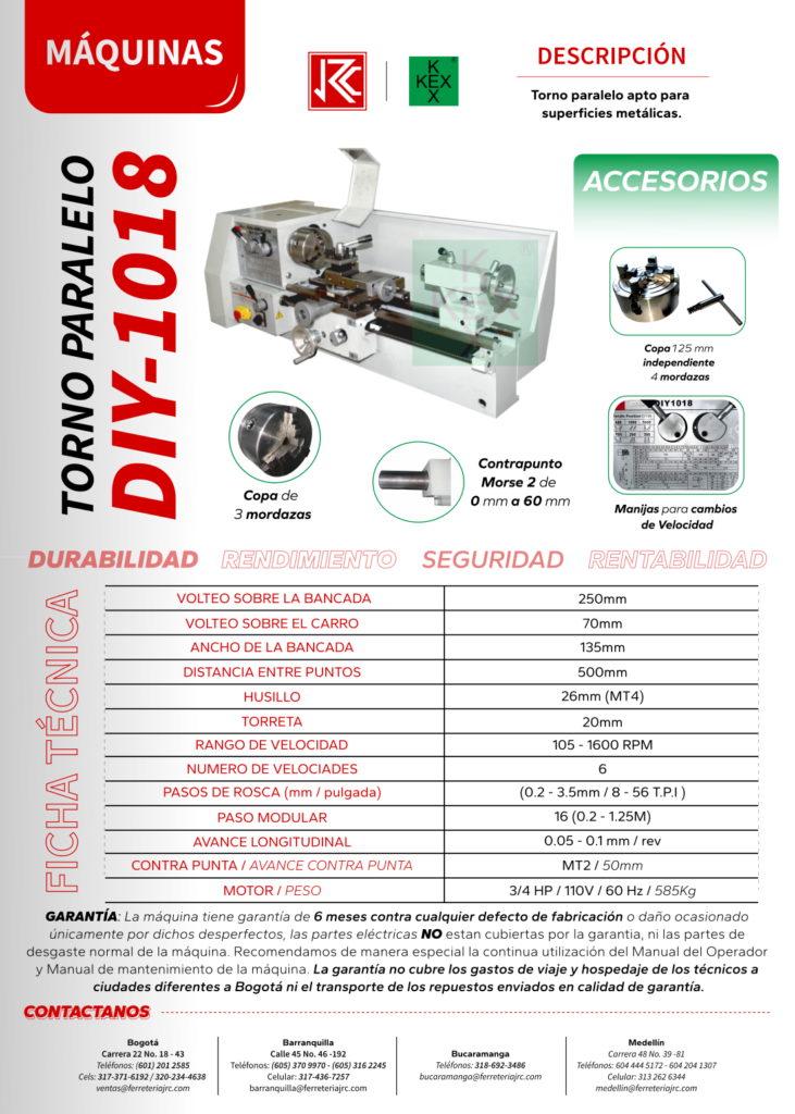ADQUIERA SU TORNO PARALELO DIY-1018, EN CUALQUIERA DE NUESTRAS SEDES.