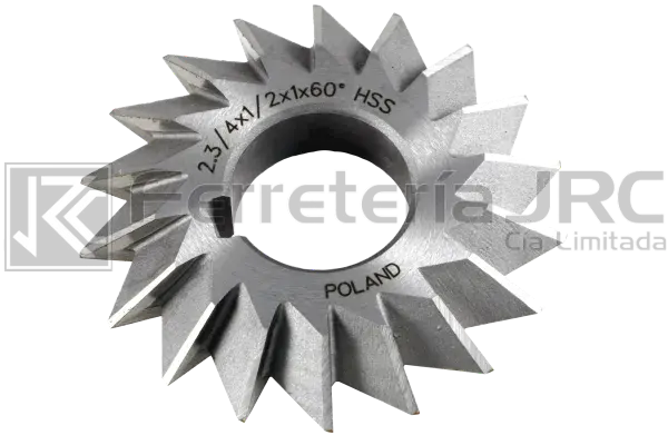 FRESA ANGULAR SENCILLA 60º DERECHA TMX Fresas angulares sencillas de corte a la derecha en Ángulos de 60°. Diámetro: 2.3/4" Ancho de cara: 1/2" Tamaño hueco: 1" Nº de dientes: 18